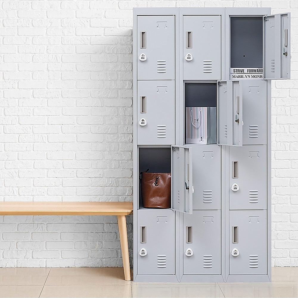 The unit has 12 individual locker compartments stacked in a 3 x 4 grid. Each locker provides ample space for personal items and can hold up to 30 kg. Built-in ventilations slits keep the stored items from smelling musty. Users may also customise their locker with a name tag or label in the designated slot provided. This comes comes with 3-digit combination lock to ensure safety of your belongings.