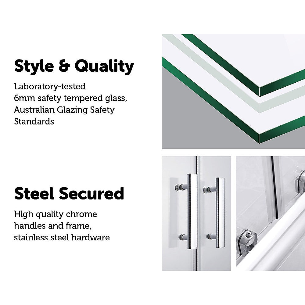 Our fabulous sliding double-door shower enclosure features 6mm quality safety glass. This eye-catching shower door is a sleek addition to any bathroom and is as functional as it is beautiful. Its 16-wheel system allows the doors to open and close quietly and effortlessly. Cleaning and maintenance is made easy with the enclosure's cutting-edge quick-release door.