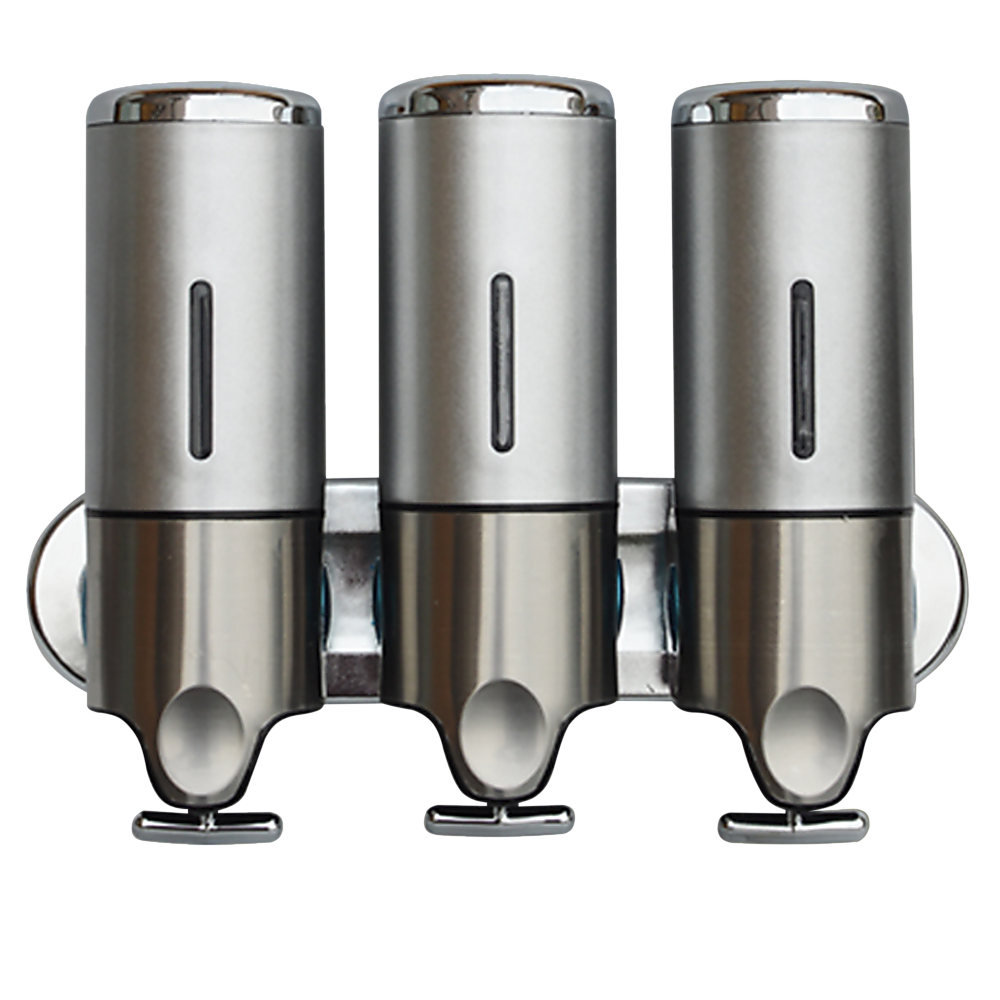 With its sleek, ergonomic design, this shower soap dispenser looks great in your shower. Install another one near your sink and keep your benchtops free from clutter. With three separate canisters attached to a single bar, the dispenser can store three different kinds of soaps, shampoos, lotions, or gels.