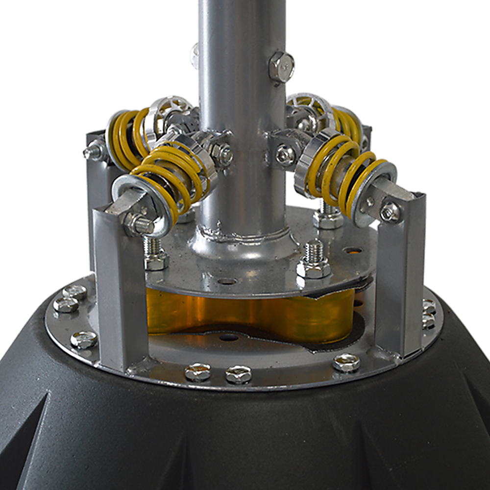 - Suction cups underneath the base, sturdy frame, and internal spring ensure stability