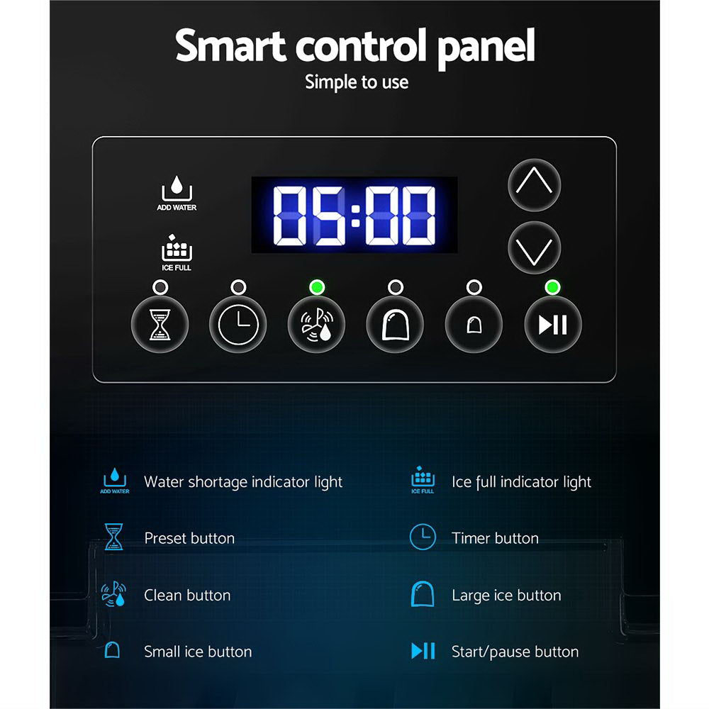 Capable of making 10 cubes every nine minutes, the Ice Cube Maker can also do two different sizes of its crystalline bullet-shape cubes. Just select your size option on the control panel – it is really that simple! You can easily monitor the ice making process through the inspection window, and automatic sensors will let you know when the water level is low. A convenient water drainage plug lets water out of the machine easily. You can even set a timer for up to 24 hours of hands-free ice making complete with an auto-shutdown.