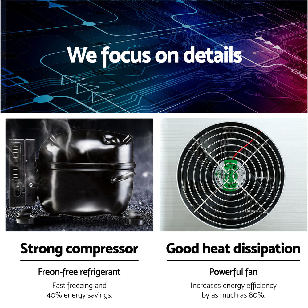 Need ice cubes on demand fast and without the hassle of driving to the nearest servo or supermarket to get some? Well your wish has just come true with our Ice Maker. It can make 9 bullet-shaped ice every 8 minutes depending on the water and ambient temperatures. That works out to be up to 12kg on demand over a 24-hour period. Just fill up with water and turn on using the easy-to-use LED digital control panel to begin the ice-making process. You can easily monitor the ice-making process through the viewing window and there is an automatic indication when the ice container is full, or water level is low. Other great features include a large heat dissipation fan for excellent cooling, convenient water drainage plug and non-slip feet for a stable operation. Not least, the ensemble works ever-so-quietly and complies with current Australian standards. Perfect for commercial use at cafes and restaurants, and home use too for parties or even an emergency ice massage.