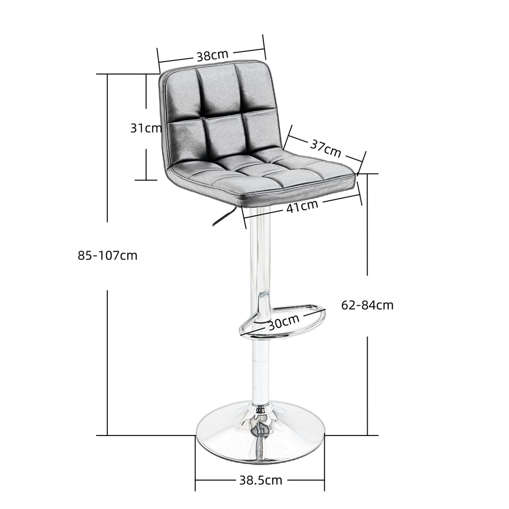 Built with adjustable hydraulic seats, these bar chairs range from 85-107cm with the flick of a handle. The built-in footrest adds additional comfort, allowing guests to relax and enjoy their dinner or cocktails for hours. The stylish chrome base offers durable support, and rubber feet help prevent scratches. These barstools have a 360-degree swivel feature, allowing them to be positioned to your liking easily. Each chair can hold up to 130 kg.