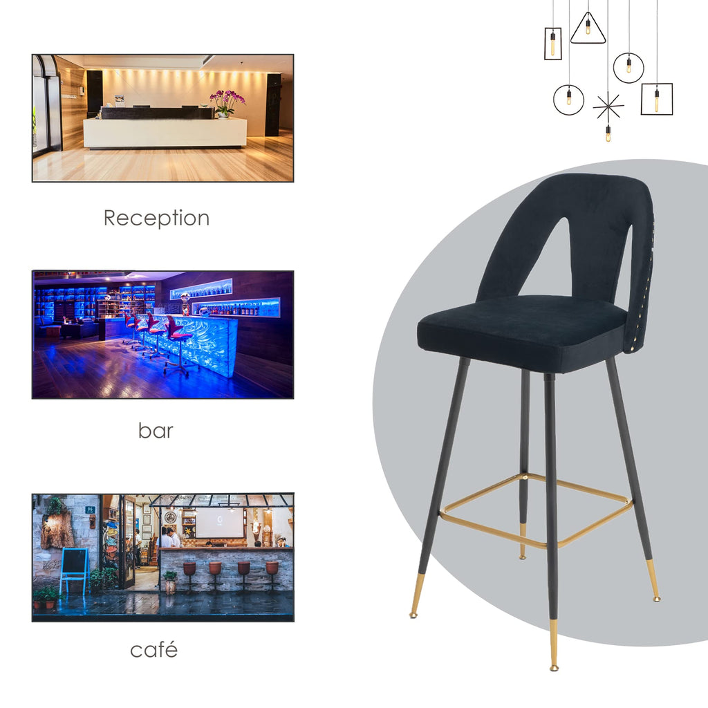 ELEGANT BAR STOOLS: Velvet combination golden nail design, making bar stool looks unique and elegant, which will well match your modern style decoration.