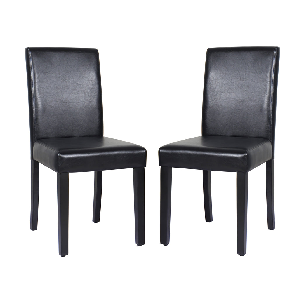 2x Wooden Frame Black Leatherette Dining Chairs with Solid Pine Legs