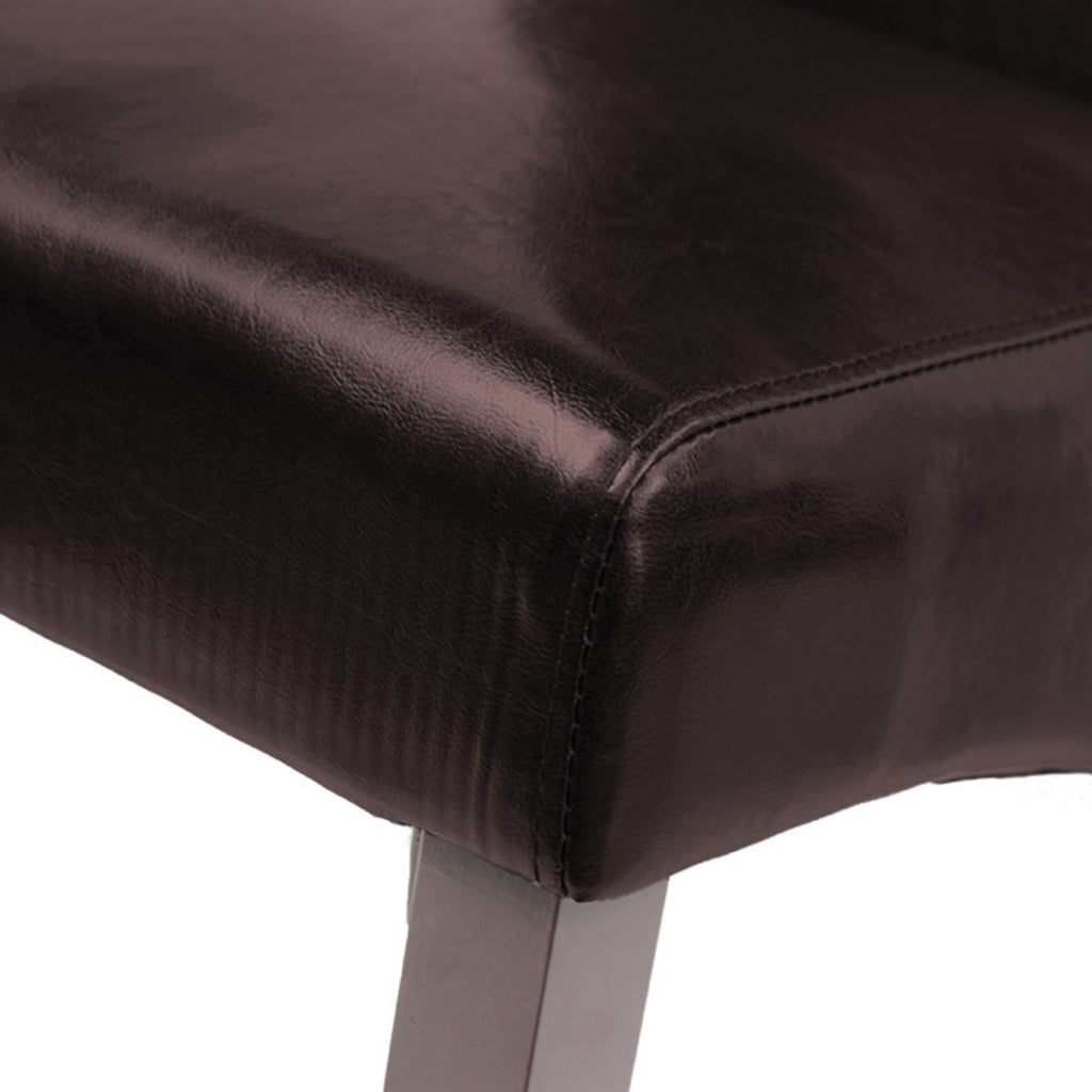 With a contemporary modern design, this dining chair has an upholstered Polyurethane leather seat along with padded backrest, which is not only very comfortable, but also very easy to maintain and keep clean, ideal for a home/office and cafés setting. The edges are sealed with matching black coloured double stiches for added durability.