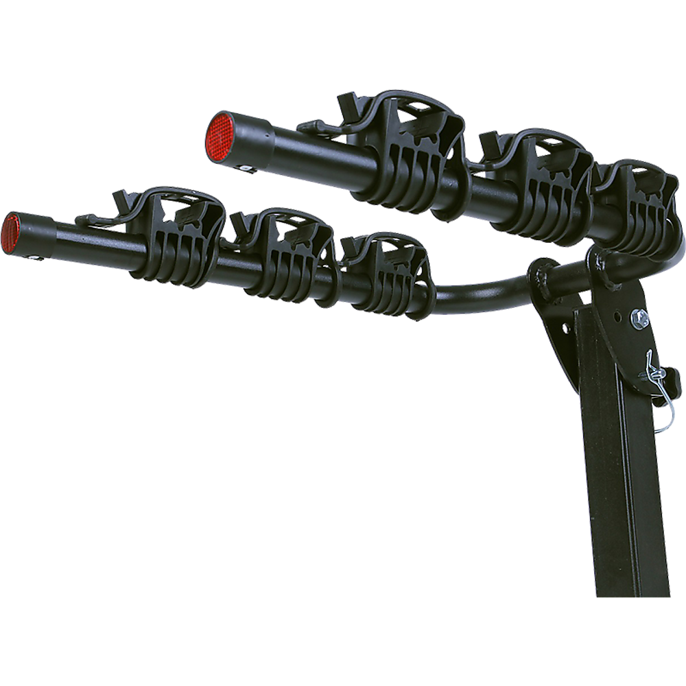 This convenient hitch-mounted rack is capable of transporting up to three bikes. Its folding carrier arms design features a standard 2" hitch receiver.
