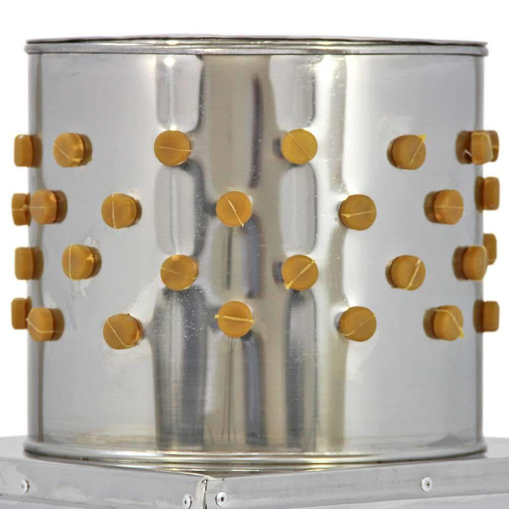 This brand new Plucking Machine is a tub style bird plucker made from stainless steel and lined with yellow rubber fingers, appropriate for removing the feathers of small and medium birds such as Quail, Pigeons, and Birds