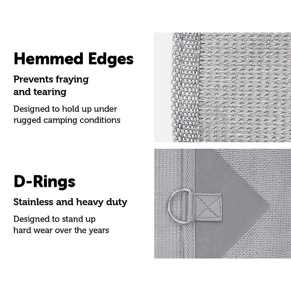 Not only does this shade ensure privacy, but it also protects against the sun's harmful UV rays and repels water with its rugged 166-gsm polyethylene fabric. A hemmed edge prevents fraying, while heavy-duty D-ring attachment joints crafted from tough stainless steel provide durability, even under harsh weather conditions.