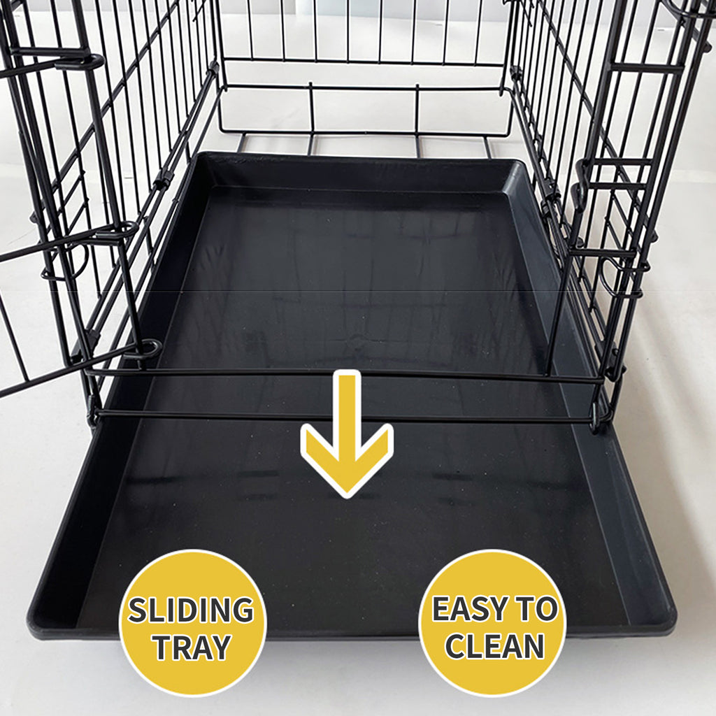 Increase and thicken the pet cage, and the iron wire is thicker. This cage has a handle, which is convenient to use. No burr on the surface, which will not harm small animals.The workmanship is fine. Each part of the dog cage is designed by technicians according to the size of the pet dog.The cage door is carefully designed to better prevent dogs from opening from inside, so pet owners don't have to worry about dogs anymore.Sneaked out of the dog cage.