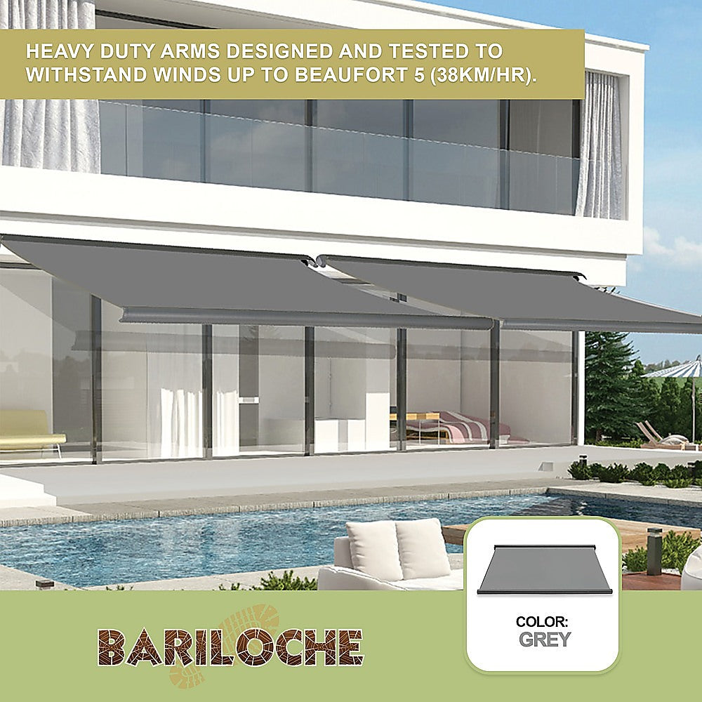 The Bariloche is a compact, motorised, full cassette folding arm awning with a neat contemporary design. It has heavy duty folding arms, designed and tested to withstand winds up to Beaufort 5 (38km/hr).