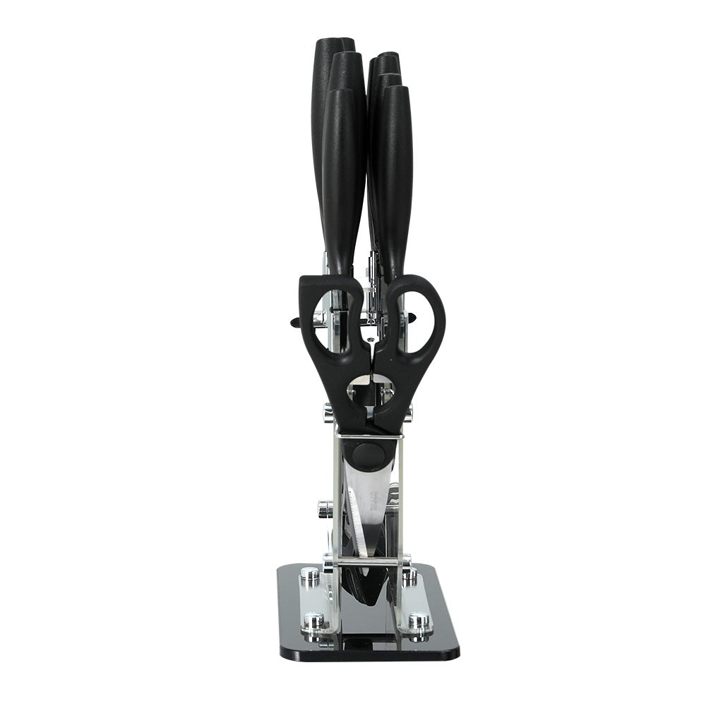 Do you love to cook? Our 17-Piece Kitchen Knife Set will keep your cooking skills sharp. The knife set comes with a chef knife, bread knife, carving knife, utility knife, paring knife, cheese knife, pizza knife, vegetable peeler, kitchen scissors, six steak knives and a wooden knife block to keep your collection organised and protected. Slice, dice, cut and gut, there's a knife for every cooking situation. Each knife is made from quality stainless steel and is constructed from a single piece for extra comfort and protection. Unlike other basic kitchen knife sets, our knives feature a non-scratch, non-stick coating that is easy to clean and incredibly rust-resistant. The knives have a well-balanced hollow ergonomic handle making them easy to hold and use. Includes a two-stage sharpener to keep your knives sharp and ready to go at all times. The knives have a hardness rating (HRC) of 53�2, making them perfect for student chefs and home cooks on a budget. With its sleek modern design, the knife set is the perfect gift for a budding chef, first homeowner, or even for yourself. Spruce up your kitchen and elevate your cooking skills today with our comprehensive 17-Piece Knife Set.