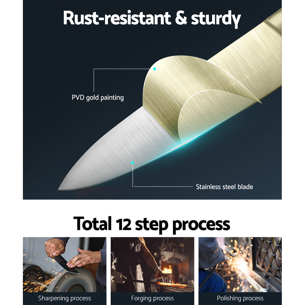 Knife's Blade: Stainless steel with gold titanium