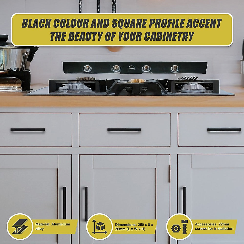 When it comes to kitchen décor, fussy is out – and streamlined is in. These elegant kitchen cabinet door pulls from Randy & Travis Machinery fit that bill perfectly. With their matte finish and square profile, they fit beautifully in kitchens from a variety of home interior styles – contemporary, Mid-Century Modern, Arts and Crafts, and so many more. Their neutral black colour blends into practically any colour scheme.