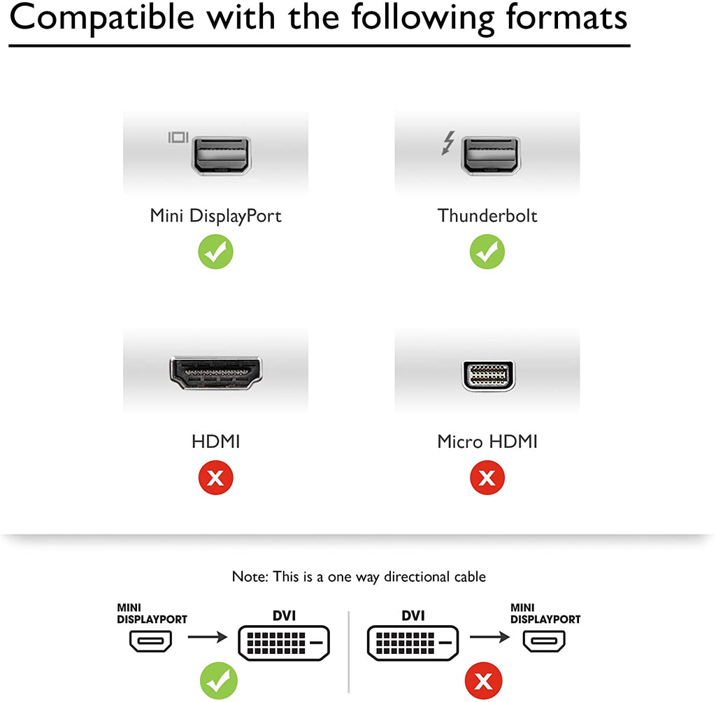 -Can only convert signal from Mini DisplayPort to DVI. This is not a bi-directional cable