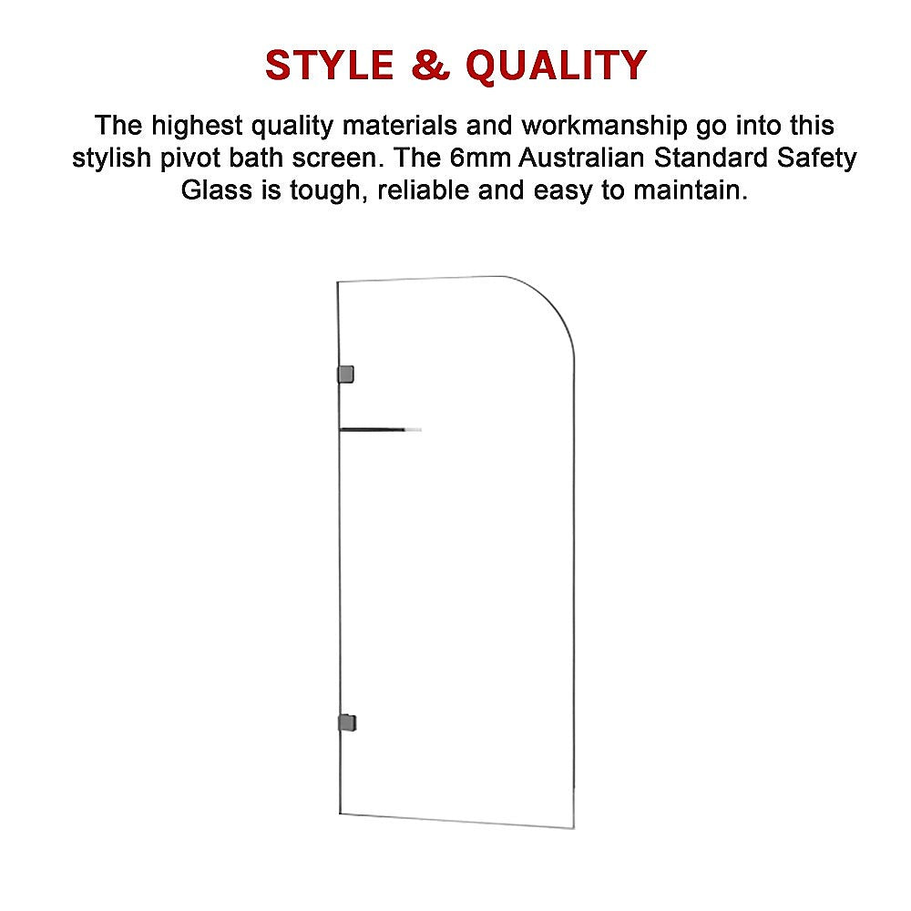 This gleaming shower door measures a generous 700 x 1450mm and features 10mm Australian standard tempered glass. The rounded-top panel is not only attractive, it is safe to use for all members of the family. The sturdy hardware on this shower door ensures safety and dependability. The elegant patch hardware add to the panels aesthetic appeal.