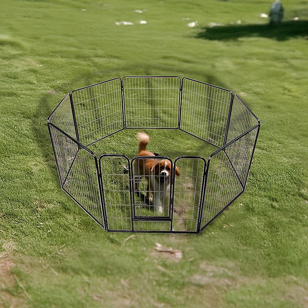 If you plan to have guests arrive and need to keep your pet contained while you clean the house, this pet playpen is the ideal alternative to a crate. It allows your pet the freedom to move around yet keeps her out of trouble as you move from room to room, tidying up each space. At 80cm high, this pet playpen works well for most pets. Even good jumpers won't usually bother with trying to escape they have all the space they need inside the pen to run and play. Crafted from powder-coated steel, this pen can hold up under whatever bumps and head-butts your furry friend dishes out. A bolt latch access door and two locks keep your pet safe inside, while its round edges prevent injury in pets trying to get out.