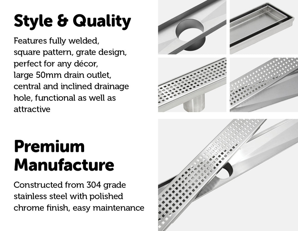 This attractive 800mm bathroom shower grate is perfect for all your water drainage needs including in the shower, washroom, bathroom and the kitchen. The 800mm shower grate is constructed of sturdy stainless steel and designed in a square pattern configuration that is functional as well as attractive. The sleek modern grate is perfect for any décor.