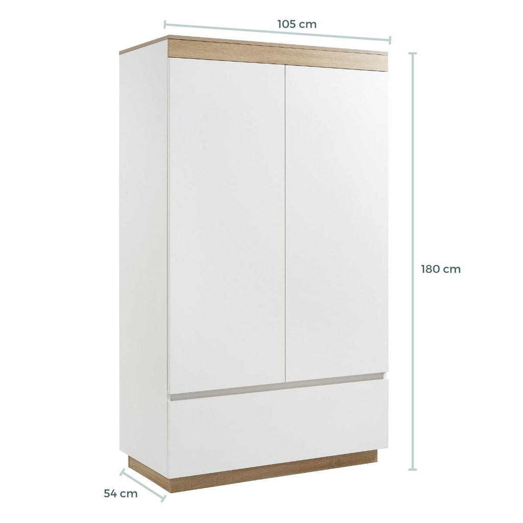 The wardrobe is constructed of top-quality materials, from the durable eco-friendly particleboard to the heavy-duty steel hardware, and is finished with premium veneers that resist scratches.