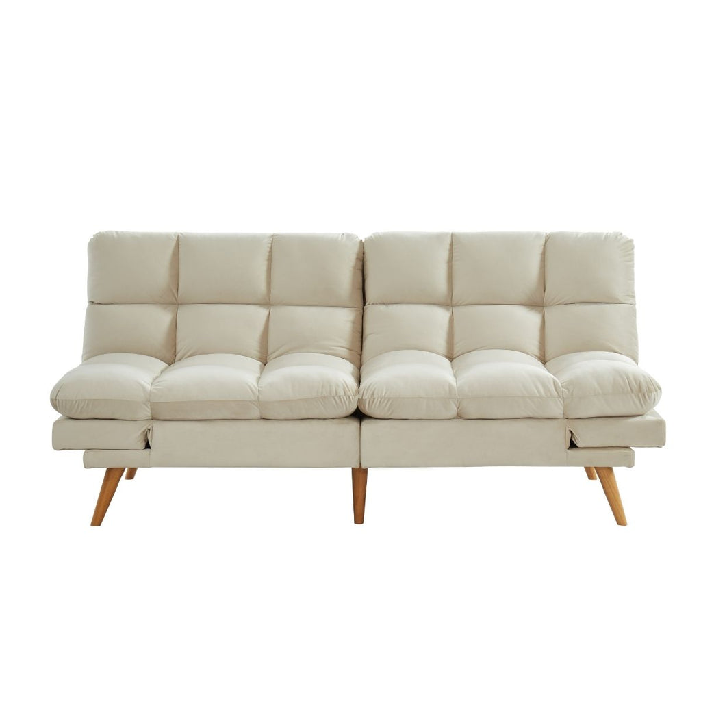 Versatile, sturdy, and elegant, this comfy sofa can be made into a sofa bed futon in a few maneuvers. Its tufted upholstering and tapered legs are made out of solid rubber wood, boasting a trendy and casual design. The thick cushioning of this sofa invites you to lounge or nap soundly with that silky velvet polyester fabric. For the best lounging experience, pop up the headrest for a comfiest recline! Enjoy that casual modern style in three (3) different colours: Light Grey, Charcoal Beige.