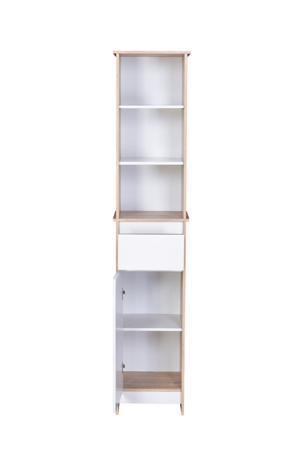 Maximize space and minimize clutter with this modern-style bathroom cabinet. Our Alto collection tallboy combines open and closed storage which keeps all your bathroom essentials neatly organized in view or out of sight.
