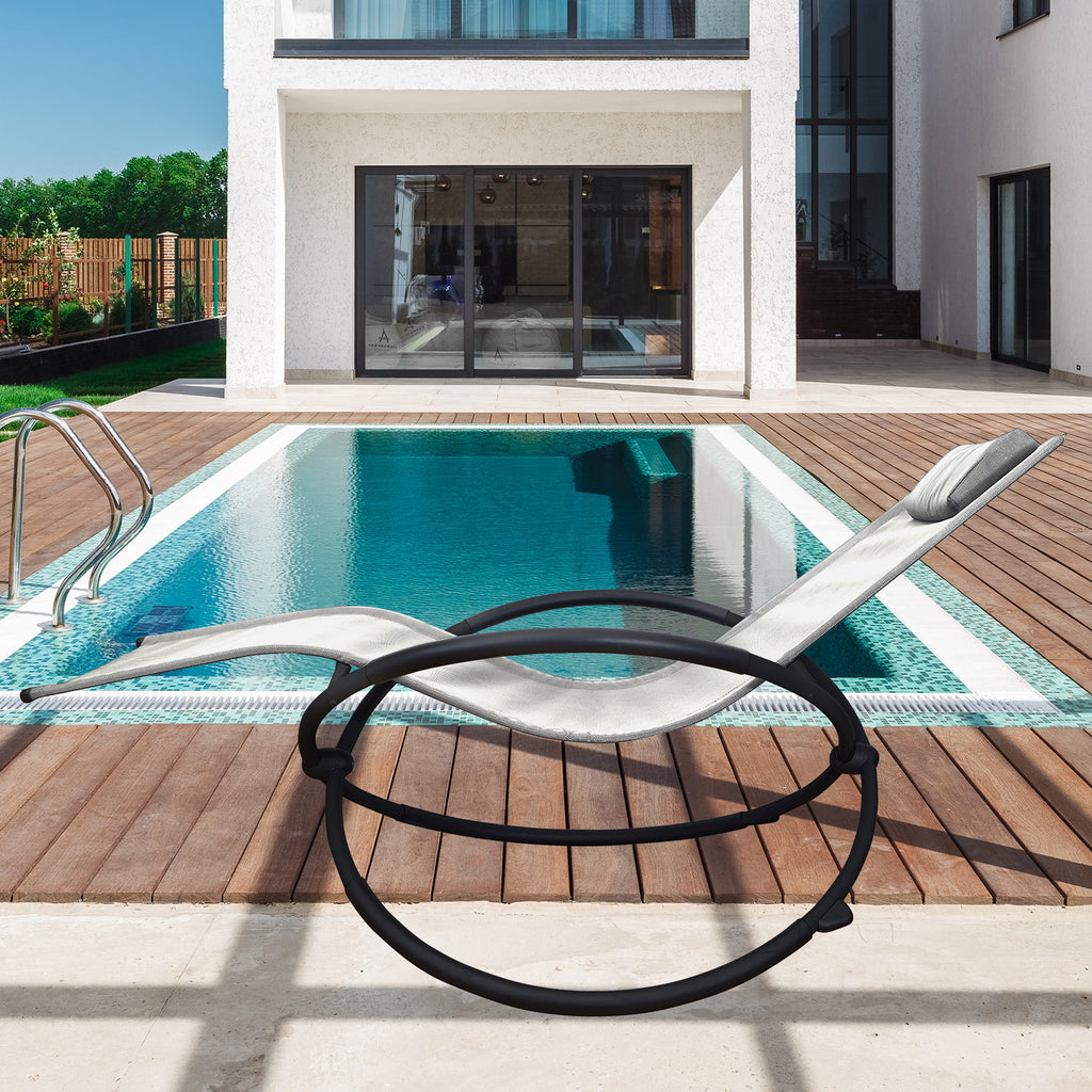 Defy gravity with style and ease in this zero-gravity rocking chair. The contemporary rocking chair boasts a solid frame for excellent durability and stops on the back side of the frame to prevent the chair from tilting.