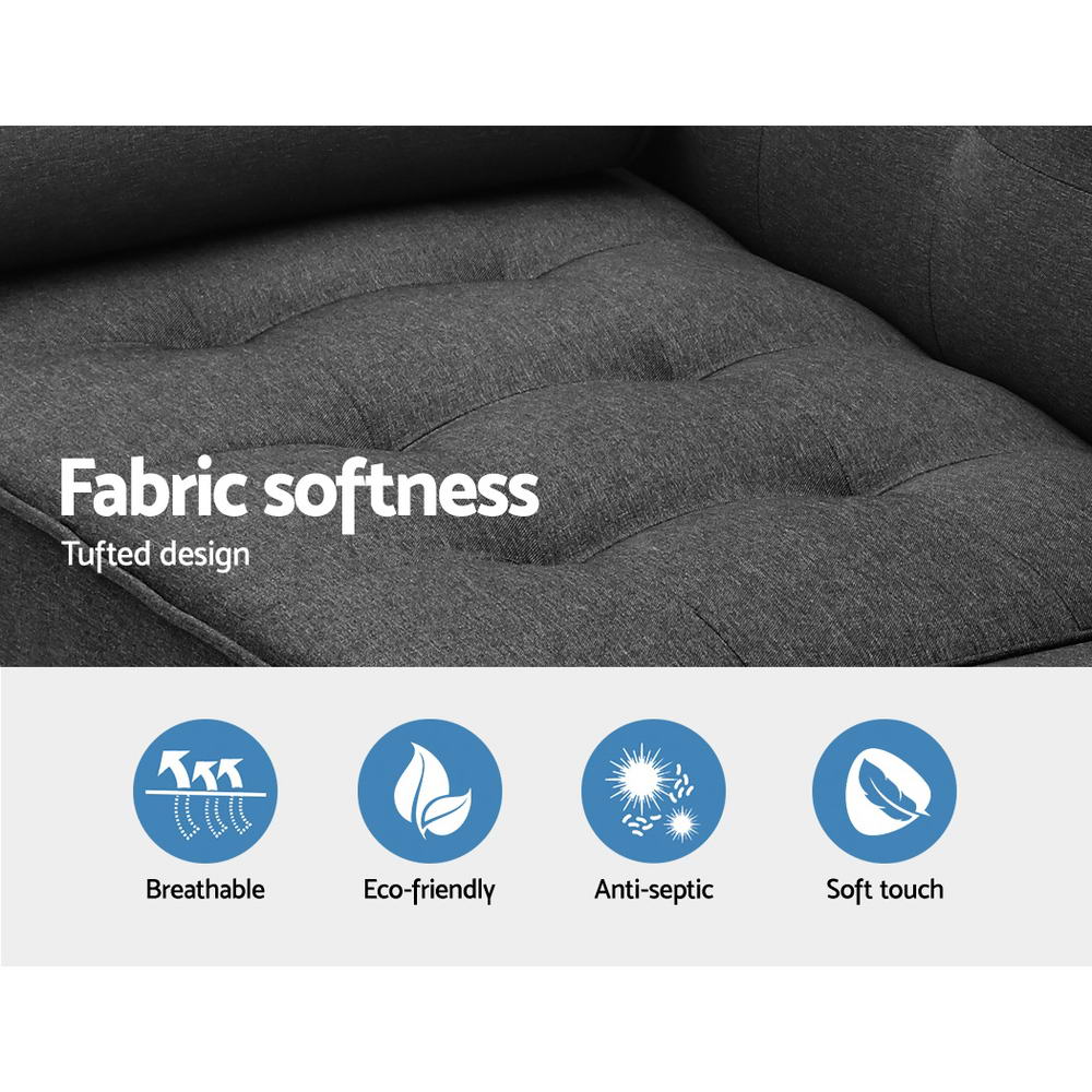 A pleasing and modern design, our Artiss 3-seater Sofa Bed is anything but ordinary. Outwardly, the 3-seater functions as a thickly-cushioned sofa upholstered in breathable faux fabric linen with a classic tufted design backrest. The workmanship is meticulous and sewing immaculate. Not least, the strong solid wood legs add a nice creative touch to the overall ensemble. Comes the time to require an extra bed, the 3-seater can be easily transformed into a comfortable bed. The backrest can also be adjusted to three settings of your preference, from sleeping to watching TV or simply chilling out. Better still, the backrest now has a split-fold function that allows you to use the backrests separately for different sofa configurations. Every part of the 3-seater sofa bed is made of eco-friendly and wear-resistant materials and built to last with a sturdy wooden construction.