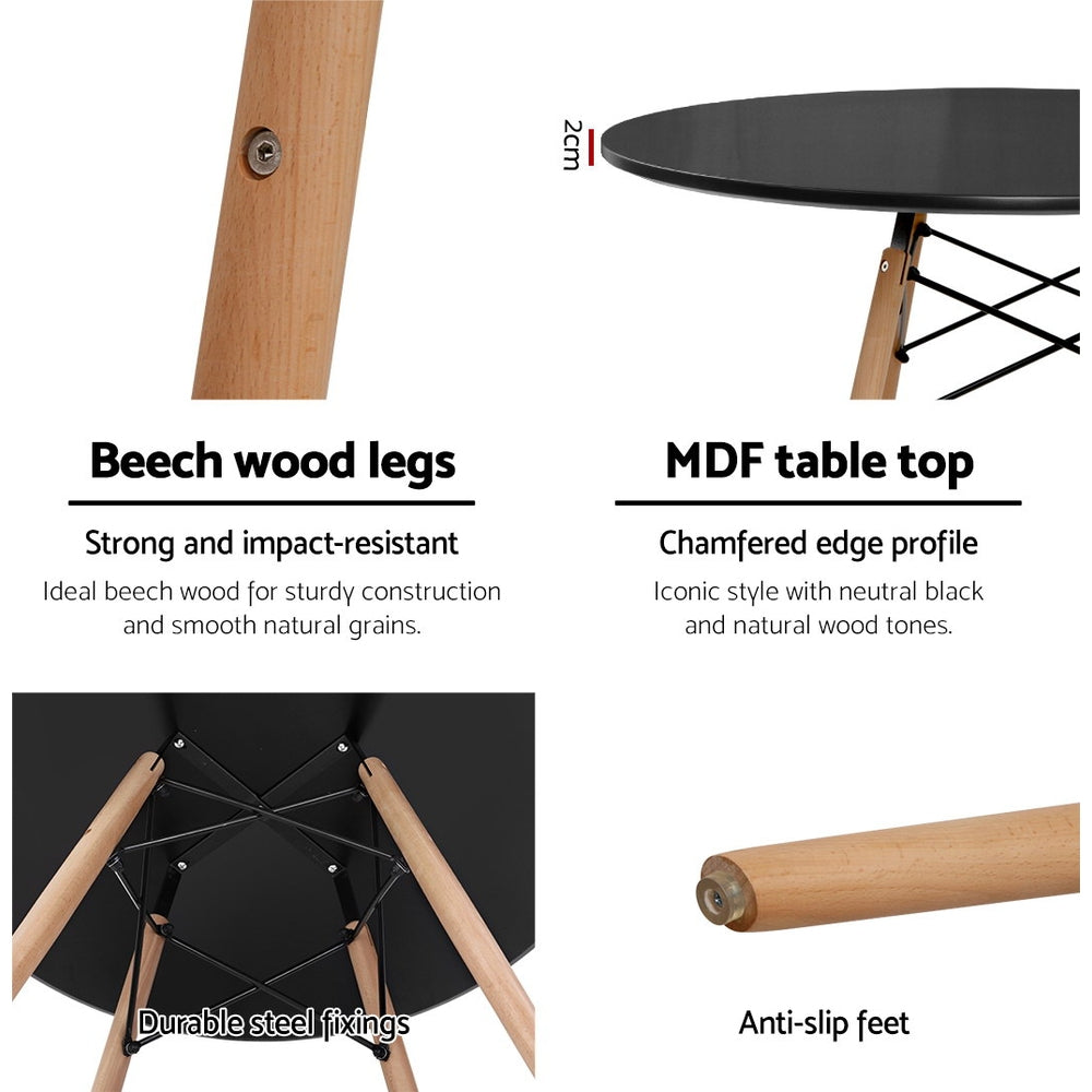 Beautifully crafted with a reinforced 20mm thick MDF table top and gorgeous solid beech wood legs, the Dining Table stands strong and sturdy with a presence that blends perfectly with any décor. Excellent details include durable steel fixings, scratch-proof matt PU lacquer finish, recessed screw joints and anti-slip legs. Not least, its 90cm diameter is ample space to accommodate a setting for four easily.