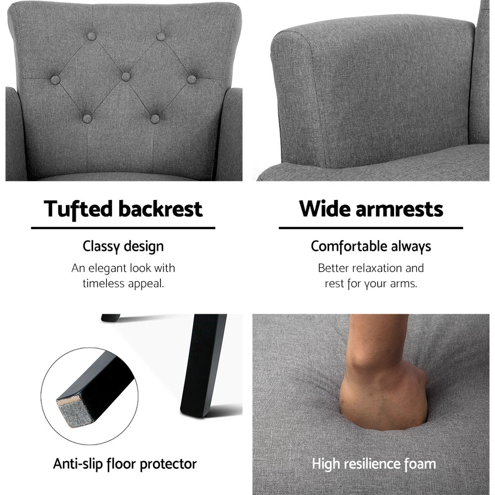This Graphite Grey Lothair Armchair offers a classic lounge features - Classic tuffed buttoning, wide armrests and dimensions - with all the effect of creating an inviting space in your home. Be it a reading and music corner, it can simply be your personal space with your favourite books and music.