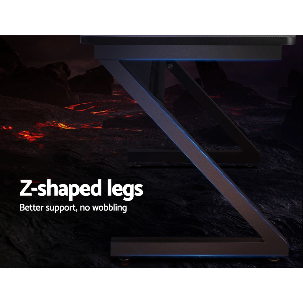 If you are an enthusiastic gamer, our Artiss Gaming Desk will be the perfect addition to your gaming setup. The wide desk surface is large enough to accommodate all your gaming gear and is strongly supported by the powder-coated steel frame with Z-shaped legs. The desktop is contoured to fit and curve around your body so that you are always close to the action happening onscreen. The smooth carbon fibre textured surface ensures that you always feel comfortable by reducing fatigue to your wrists. There is a built-in cable management system at the back of the desk so that the cables do not get in your way and remain tidy. Floor protectors are installed on the base of the desk legs so that no amount of your furious clicking of the mouse while gaming will even make a dent on your precious pristine floor. Create your own gaming arena at home with our gaming desk for the perfect gaming experience.