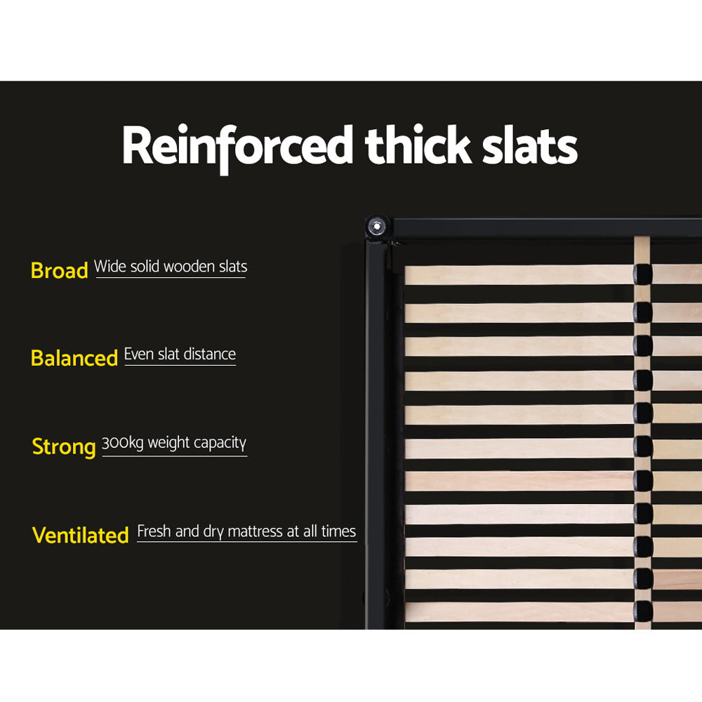 Give your bed a touch of modernistic appeal with our Artiss Neo Bed Frame. Wrapped in premium PVC leather, the bed frame is at once smooth to the touch and luxurious all round. The bedhead provides ample space for a relaxing back rest when you need to sit up on the bed to read, surf the net or catch a movie on your device. You will surely appreciate the high-density foam that fills the bedhead and every other inch of the bed frame for a well-padded look and feel. Within the frame, a highly flexible wooden arched slat base allows the bed to flex properly so that a person who lies on the bed can move around without unduly disturbing the other. Not least, the sturdy wooden frame is also held together by heavy-duty metal connectors so that you never have to worry about the stability or durability of the bed frame. If elegant sleep is what you after, look no further than the Artiss Neo Bed Frame to make your dreams come true.