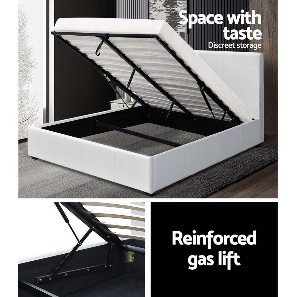 It is time to get the sleep you deserve with this Artiss Nino Bed Frame. Beautifully draped in PU leather, this is the luxurious bed frame you all deserve to rest in every night. The smooth headboard brings the prestige, whilst the strong steel frame with reinforced steel bars and a wooden arched slat base can put your mind at ease as you know you are sleeping on quality. One of the best qualities is the fact the bed frame has a gas lift which creates an instant storage area with ample space for you to hide away your items. This bed frame has the smarts as well as being great to look at!