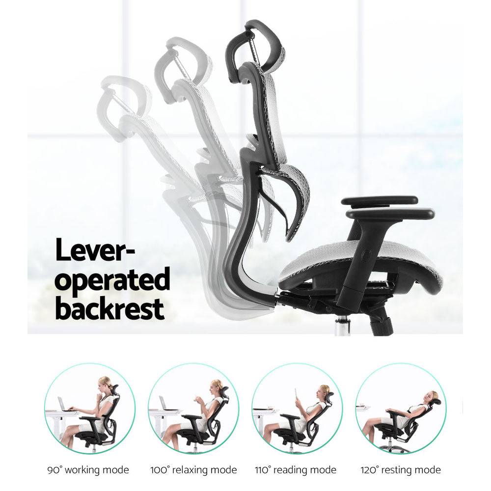 Our Artiss Presidio Executive Mesh Chair takes work and relaxation seriously. Fact is, the chair integrates both perfectly to give you a premium chair that does more than just luxurious seating. The highly breathable mesh means that you are never hot and bothered with long seating hours as the chair is always well ventilated. Its high backrest offers ample lumbar support while the C-shape headrest can be adjusted to suit your head and neck lean-back. Plus, the 3D armrests have adjustments for forward, reverse, up, down and all-round settings to suit your arms placements. With up to 125° inclination, the chair can also be reclined to suit work, leisure, relaxation and every purpose in between. Better still, its saddle seat design ensures that you are always seated optimally and not worry about sliding off the seat or sitting too far back from the desk. Not least, the aluminum alloy base features muted wheel castors that not only prevent floor scratches but also allows quiet and smooth mobility together with the omni-directional seating.