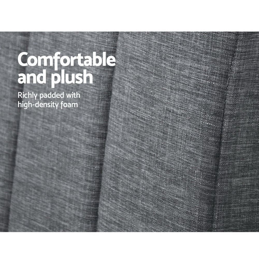 Up the opulence factor and indulge in our luxurious Sala Bed Headboard. With its art deco nuances of clean vertical lines, our Sala Bed Headboard is teeming with class and decadence. Crafted from solid timber, every part of the Headboard is designed to be sturdy and longlasting. Beneath the premium faux linen fabric upholstery, the Headboard is filled with high density foam measuring an extra thick 8cm to give you maximum comfort all round. The breathable fabric also ensures a well-ventilated Headboard for more pleasant use in all weather. Better still, match it with our optional bed base for a lovely bed that exudes class and style in fine measure. There can never be too much of a good thing. At least not with our Artiss Sala Bed Headboard. Get yours today.