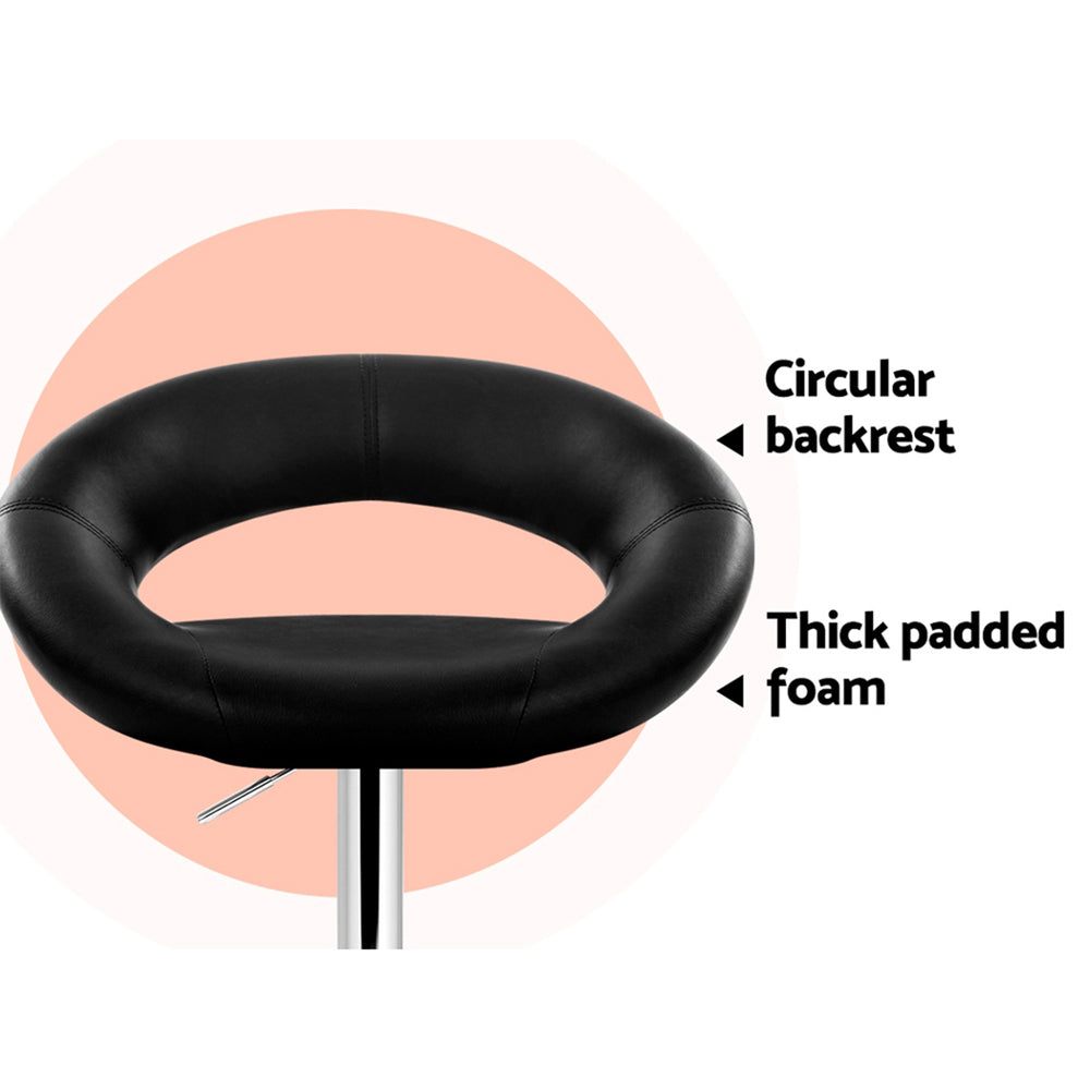 With its classic design and contemporary good looks, these bar stools are a must for every discerning home-proud person. Upholstered in faux leather, the bar stool also features an extra thick foam padding for ultimate comfort. The contoured Circular backrest also adds a touch of class and comfort. The semi-circular footrest ensures relaxed sitting while the omni-directional seat makes for easy turn to any facing. The height can be easily adjusted to your preference with the SGS-tested gas lift, and the large base ensures stability at all times. Not least, a floor protector under the base helps to keep your pristine floor scratch-free at all times.