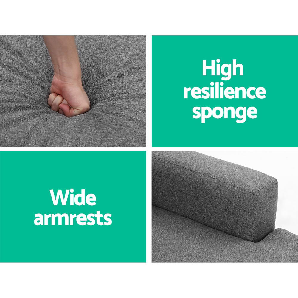 With our Artiss Modular Sofa Set, you never have to stick to one configuration. The reversible chaise allows you to configure the set to suit your space and style for easy makeovers. Naturally, the faux linen fabric sofa is made with a sturdy wood frame and cushions padded with extra-thick foam for plush comfort. The stylish chrome legs add a very modernistic touch to the entire ensemble while the wide armrests provide a good resting spot for your weary arms. Not least, the cushion covers are removable and washable for easy cleaning. Get your own Artiss Modular Sofa set today and discover its practicality in more ways than one.
