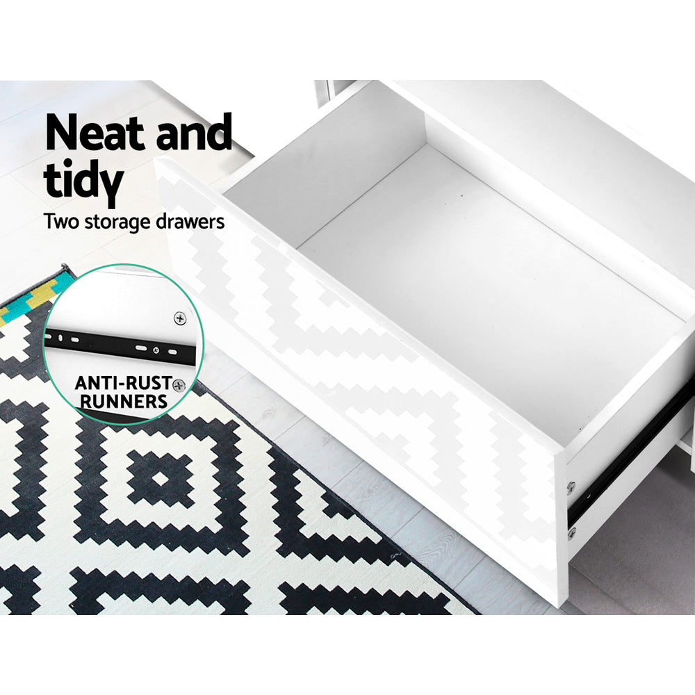 Weight capacity: Tabletop 60kg, Drawer 5kg, open shelf 10kg