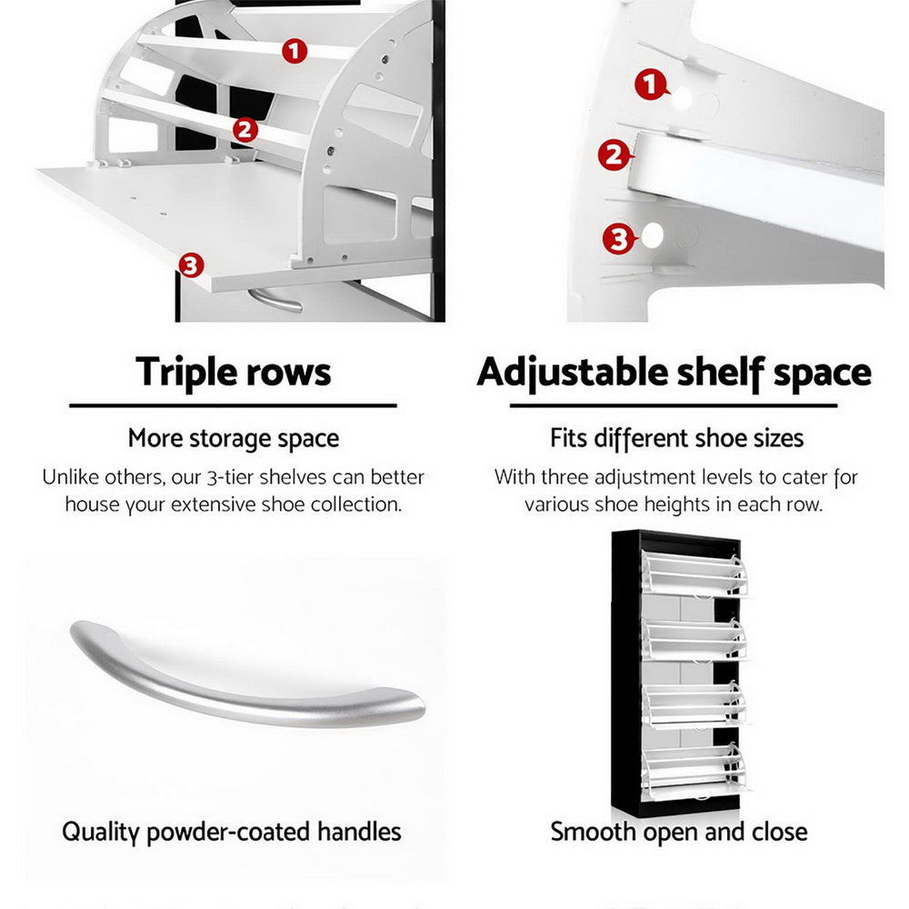 Up to 60 pairs of shoes in a one shoe cabinet. That is practically a footwear utopia for all footwear lovers. And that is what the Artiss 4-tier Shoe Cabinet is all about. With four tiers of an adjustable triple-shelf compartment, the Shoe Cabinet provides ample storage space for virtually any type of footwear. Heels, sandals, sneakers, boots. You name it, it stores it with minimum hassle. Better still, the sturdy construction and smooth melamine finish also comes with vents on the backboard to enable good ventilation to keep both odour and moisture at bay. Not least, right on the top, you can add some stylish touches to the ensemble with some of your favourite displays. Create an elegant welcome to your home with the Artiss 4-tier Shoe Cabinet. Get yours today.