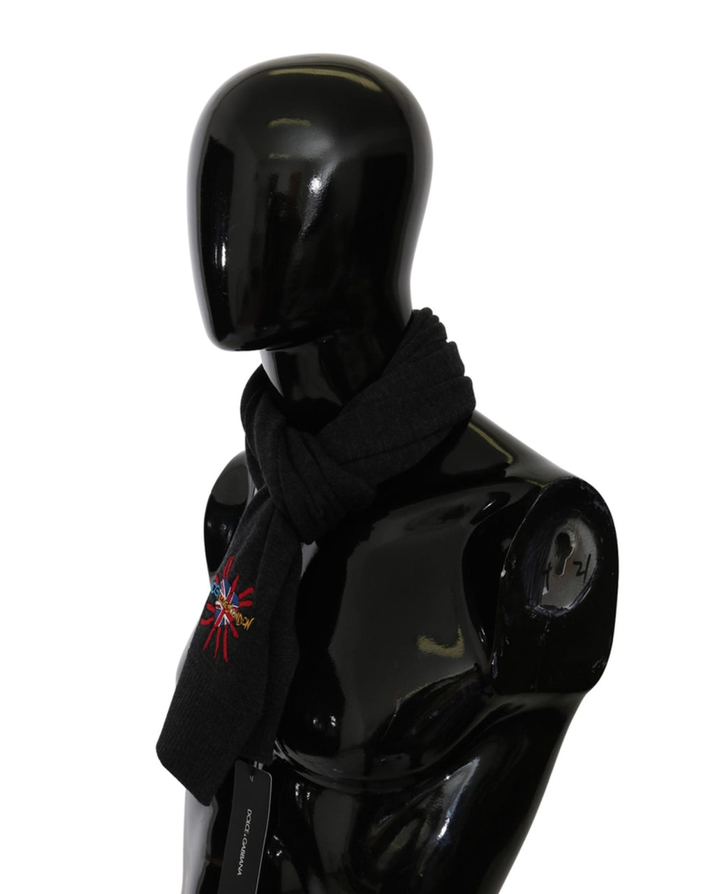 Authentic Dolce & Gabbana Gray Wool Scarf with Embroidered Details One Size Men