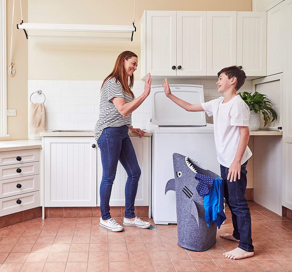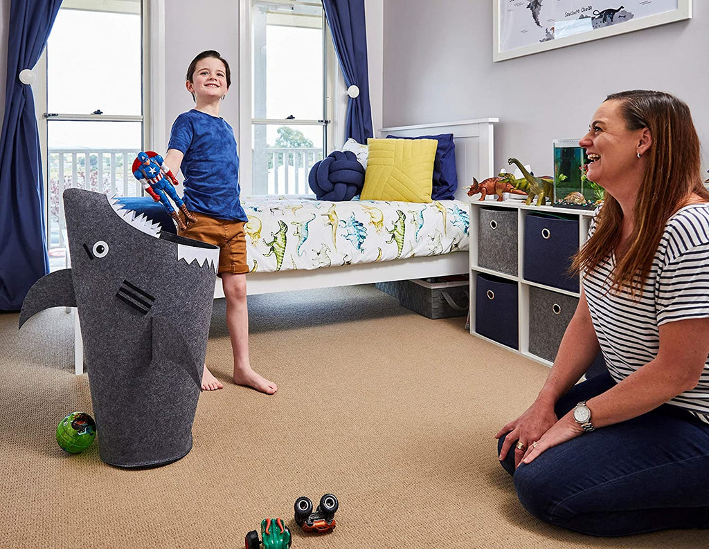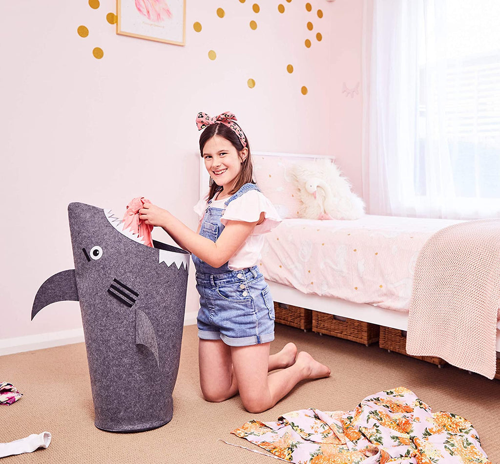 Kids Feed Shark Hamper- Our specially designed hamper encourages kids to tidy up all by themselves. Customers repeatedly tell us that after naming their shark laundry basket, children can't help feeding it snacks. Teaching kids to tidy up with this cute basket for toys is easy and fun.
