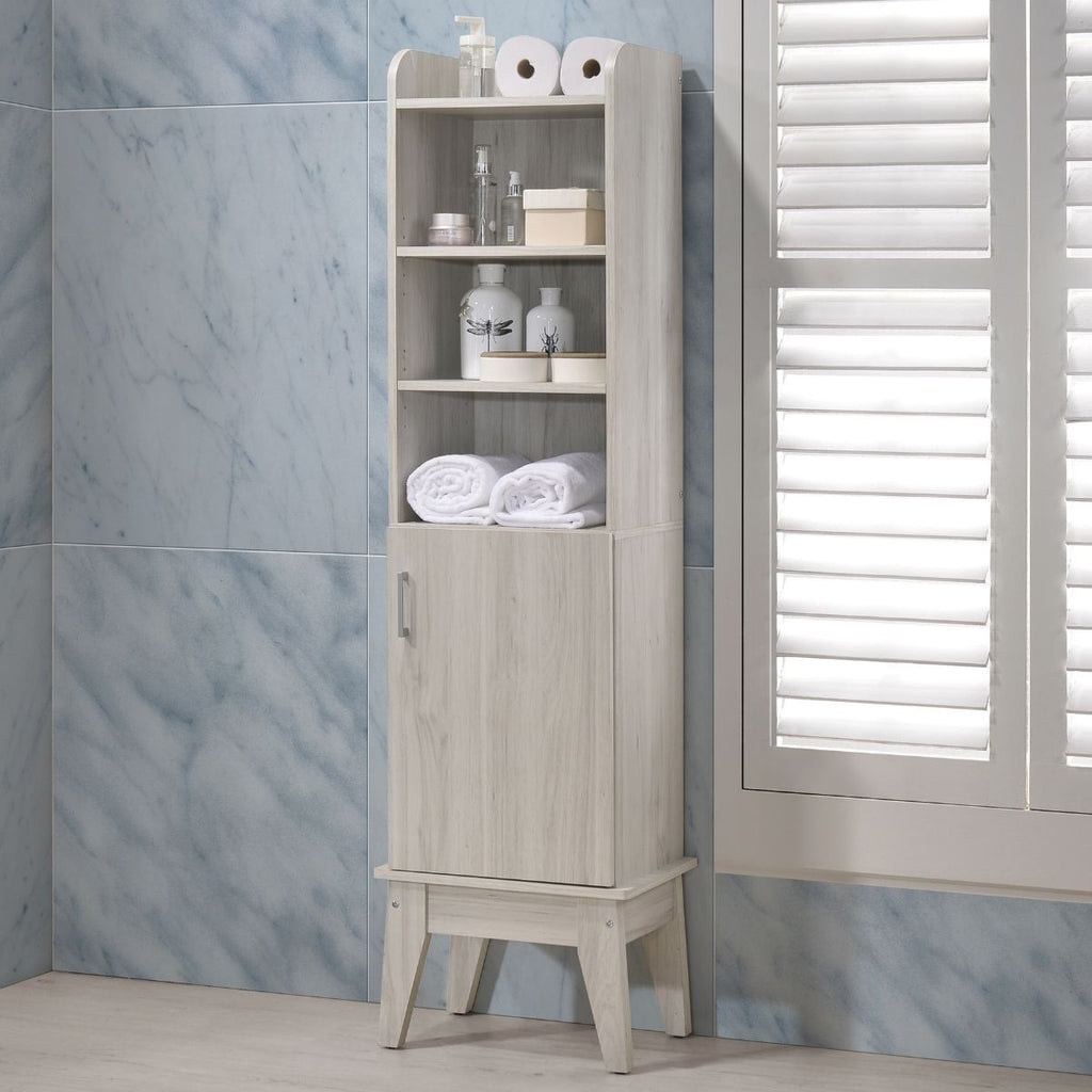 Maximize your space in your bathroom with the high design of the cabinet. This versatile, spacious cabinet features open shelves providing ample space for storage or display, while the lower cabinet with hidden shelf offer discreet storage for personal items. With classic design and clean lines, this durable MDF cabinet makes an elegant and attractive addition to your home.