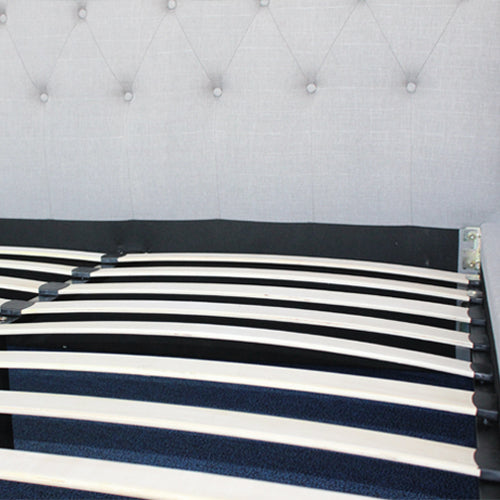 Our stylish modern bed frame is furnished with the premium quality fabric and the headboard is finely decorated with deep quilting and fabric covered buttons on high padded surface.
