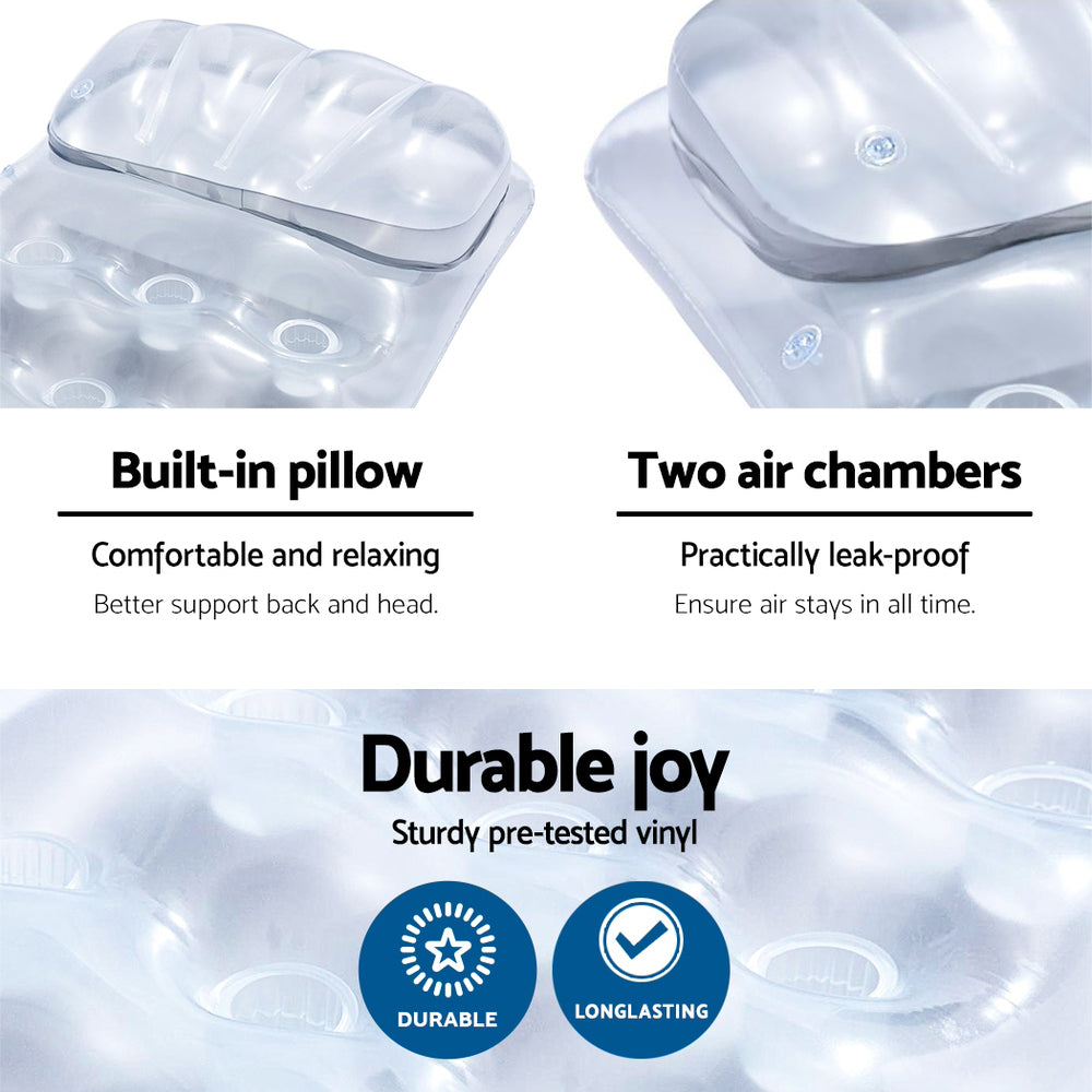 Kick back and chill out on your pool with our Bestway Inflatable Lounge. With its sleek design, our inflatable lounge is guaranteed to provide you plenty of aquatic fun and relaxation. Made from sturdy pre-tested vinyl, the inflatable lounge is durable and reliable. It has two leak-proof air chambers to ensure that air stays in all the time. You can float away for hours on end as the built-in pillow provides with ultimate comfort. The inflatable lounge is made to last for many summers, but should an accidental tear occur, the supplied repair kit should be adequate to patch the fun back with minimum fuss.