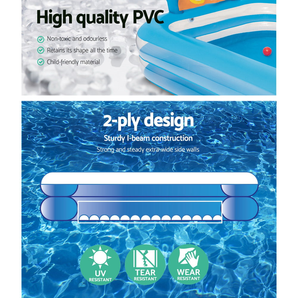 Your children will be making a splash among their friends this summer with the Bestway Skill Shot Play Pool. With its 2-ply design, the pool is strong and sturdy and stands up to robust play with minimum hassle. The pre-tested vinyl material is also durable and safe for kids. Better still, the pool also features two skill shot inflatable panels on each end. Kids can have a whole lot of shooting fun with the included five play balls to score hits on the panels. And once the fun and games is over, just release the easy-to-drain safety valve to empty the pool and store until the next play day. Not least, a heavy-duty repair kit is also included. Packaged in a colourful box, the pool is recommended for kids 3 years and above.