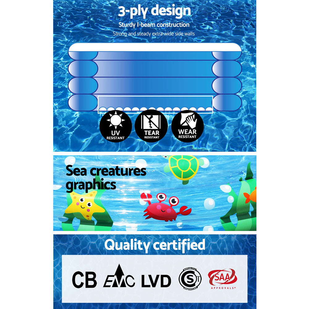 Setting up the pool is a breeze. Select a spot in your garden, inflate the pool, add water and everyone’s in for great aquatic fun in no time. Drainage is easy with the fast drain valve for compact storage and a bonus repair kit is also provided in case of accidental leaks.