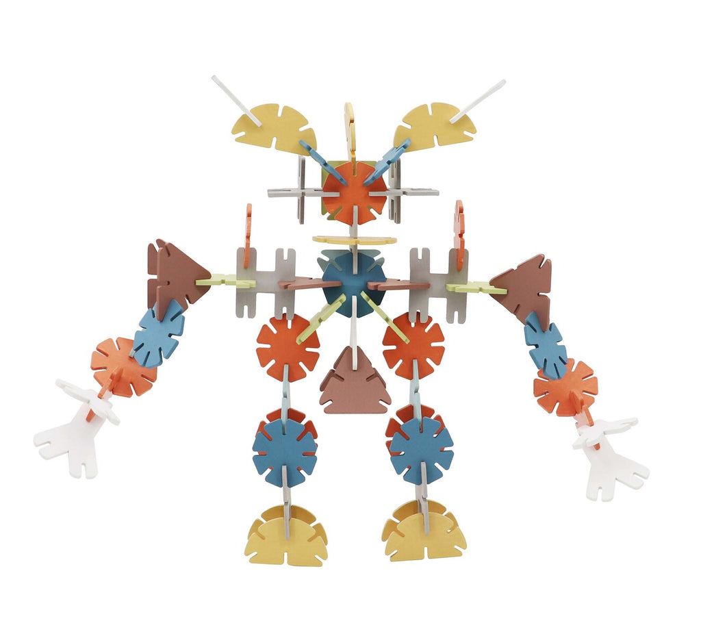 What can you build with these these fun snow flakes? 99 pc set of wooden geometric shapes and in assorted colors. Construct amazing creations with these pieces that slot together
