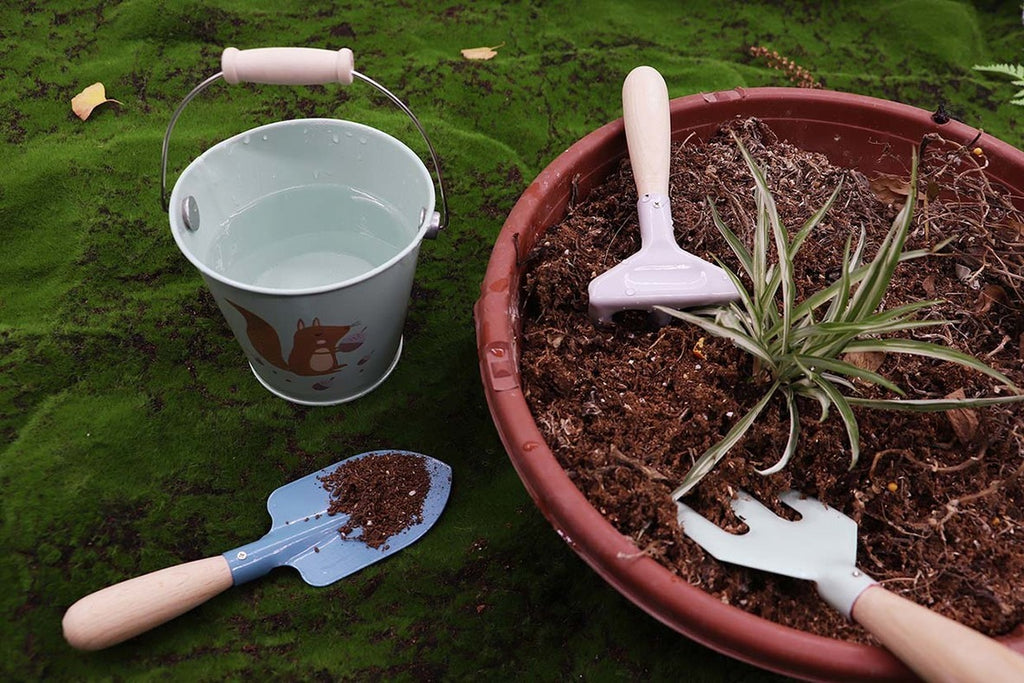 Specification:Pink bucket size 15cmLx15cmWx22cmH. Hand rake size approx. 14cmLx 4cmWx7cmH. Hand trowel size 20cmLx2.5cmWx 6cmH. Hand fork size 19cmLx 2.5cmWx7cmH
