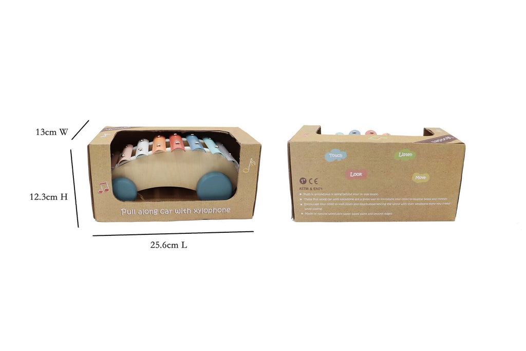 A gorgeous wooden car shaped xylophone for all the little musicians. Made with good quality natural wood and non-toxic painted metal keys. Can tolerate heavy playing while consistently producing great sound. Comes complete with 2 wooden sticks. Each xylophone is individually boxed. Music is a vital part of a child's early development. Helps with hand and eye coordination.