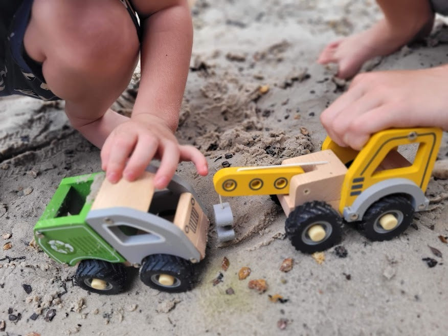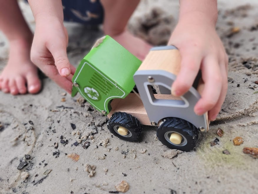 The best day of the week is rubbish day, because then we get to see the recycle truck! This sturdy wooden recycle truck features rubber wheels to protect surfaces and will put up with the rough and tumble of childs play. Madeto a high quality finsih, this truck is made with natural beech wood and non-toxic paint.