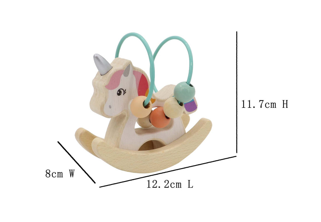 A gorgeous wooden rocker with beads maze. Made with good quality natural wood and non-toxic painted beads. Helps with hand and eye coordination.